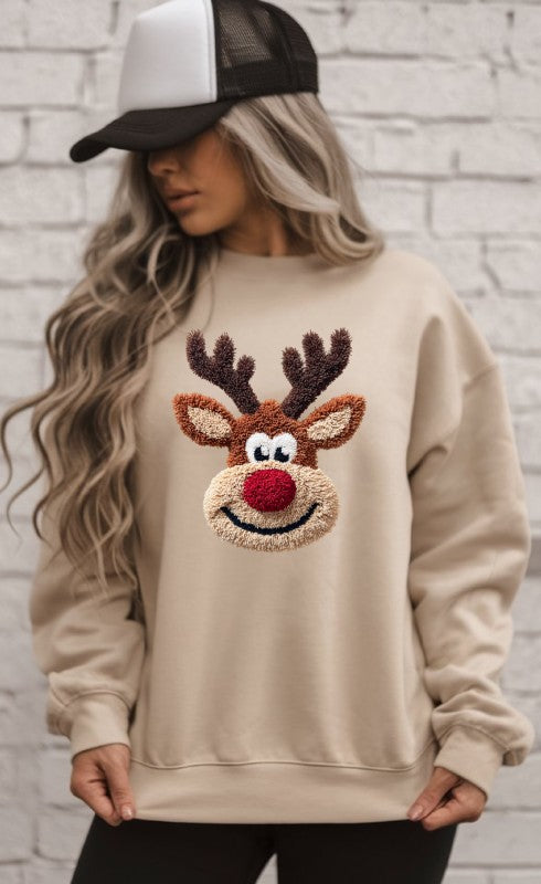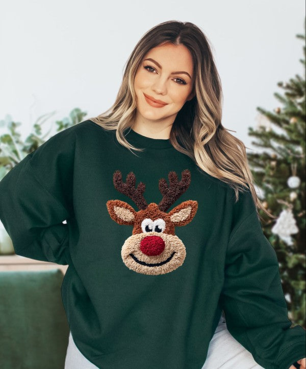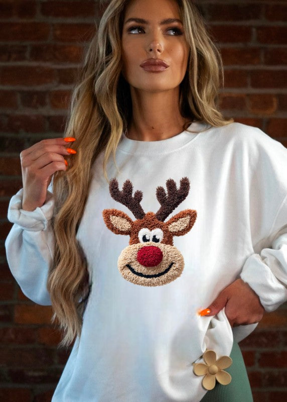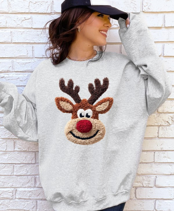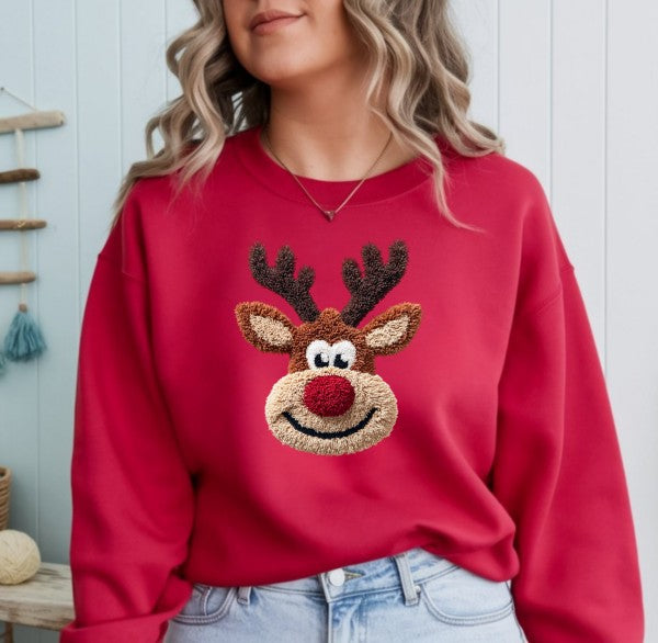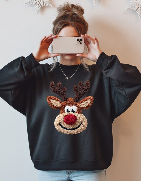 Crochet Latch Hook Reindeer Graphic Sweatshirt